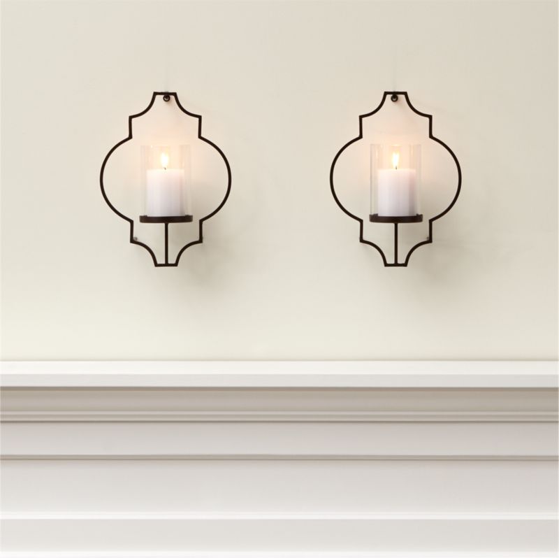 Upcycle Metal Wall Candle Holders / PAIR 30" AGED BRONZE HAND FORGED METAL GLASS WALL SCONCE ... / The dramatic black ornate laser cut pattern brings a bold look to any wall.